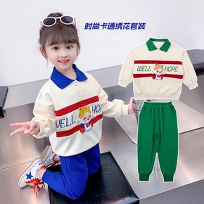儿童时尚韩版长袖卡通卫衣两件套女童2022春秋新款...