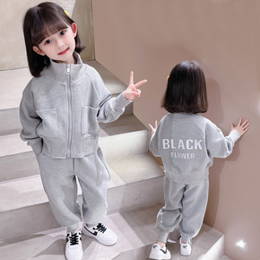 2021冬季新款女童加绒加厚圆领长袖套装带挎包女宝...