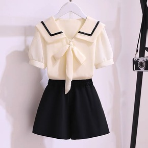 女童洋气套装夏款2022新款大童雪纺短袖童装女孩网...