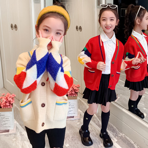 女童开衫外套秋冬款2021韩版洋气上衣中大童宽松卫...