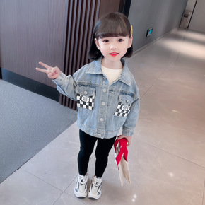 女童牛仔外套春秋2022新款韩版洋气儿童时髦夹克春...