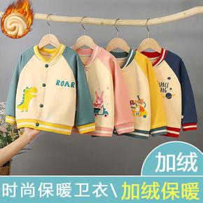 宝宝春秋开衫纽扣外套男女童加绒棒球服婴儿保暖卫衣韩...
