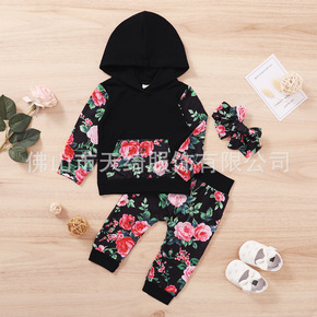 2021春秋新款欧美跨境儿童套装连帽套头卫衣 亚马...