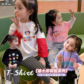 女童长袖T恤儿洋气打底衫体宽松假两件2021新款女...