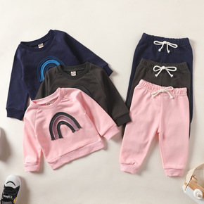 新款欧美风棉绳彩虹纯色卫衣长裤两件套套装 多色可选...