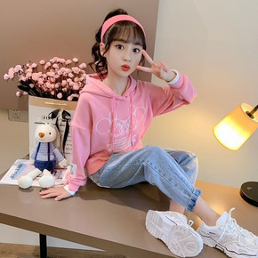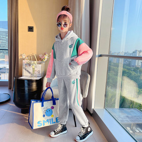 春秋女童套装宝宝网红洋气儿童个性潮韩版连帽卫衣字母...