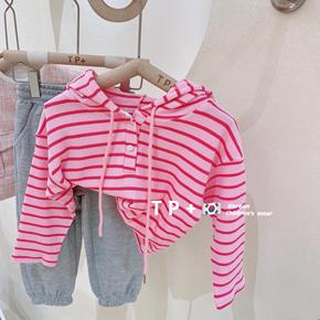 女童春装新款条纹连帽卫衣+休闲长裤2件套套装E42...