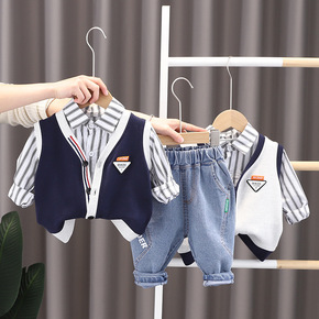 2022春季韩版时尚学院男童秋装小男孩毛衣马甲衬衫...