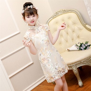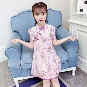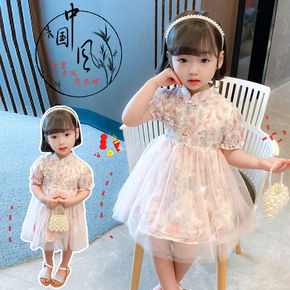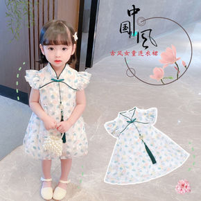 儿童旗袍女童夏季公主裙小女孩中国风童装夏季改良唐装...