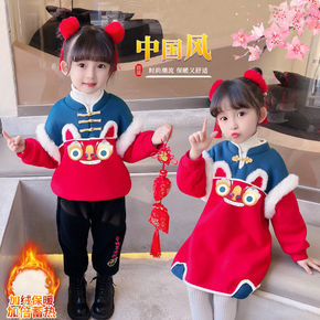 女童拜年服加绒卫衣兄妹装连衣裙唐装男童冬季中国风大...