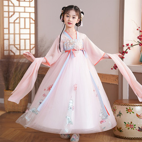 女童汉服儿童雪纺裙古风唐装中国风古装超仙女小女孩短...