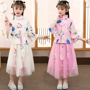 女童改良唐装古装雪纺汉服纱裙套装夏季中国风超仙女飘...