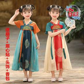女童汉服2022夏季新款儿童古装中国风连衣裙女孩唐...
