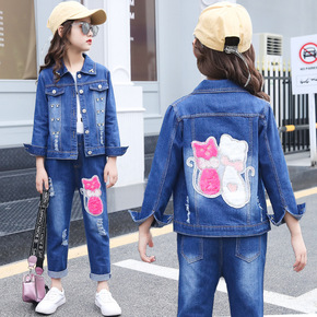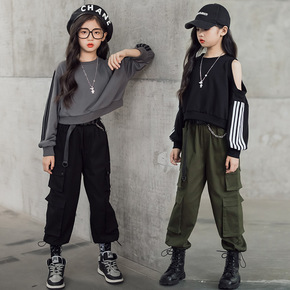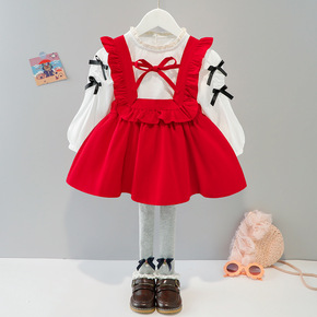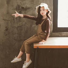 韩版童装外贸春秋款女童两件套中大童儿童长袖T恤背带...