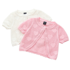 女童一粒扣针织开衫短袖外套中小童宝宝披肩空调衫夏季...