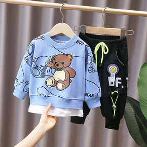 2021新款秋季儿童卫衣运动套装格子拼色男童中小童...