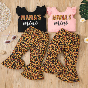 外贸2022新款女童欧美豹纹童两件套小女孩飞袖字母...