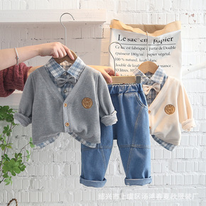 22新款韩版儿童空调服男女童长袖套装婴儿棉花提花透...