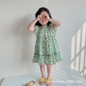 杰米尼童装2022春夏新品女童韩版卡通田园风小飞袖...