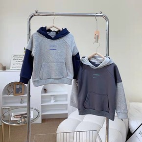 2022春款儿童连帽卫衣中小童假两件印花卫衣长袖棉...
