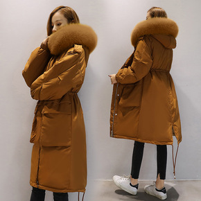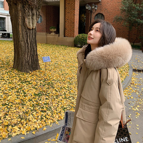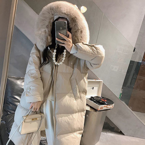 羽绒服女中长款2022新款冬收腰大口袋保暖狐狸毛领...