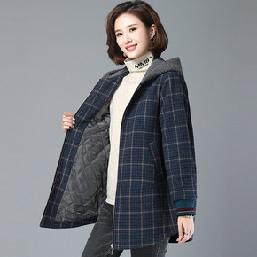 棉服女中长款2021新款休闲中年妈妈大码棉袄夹棉外...