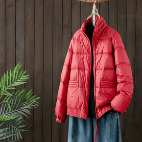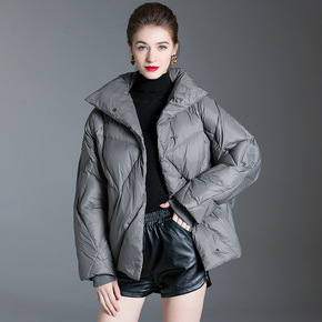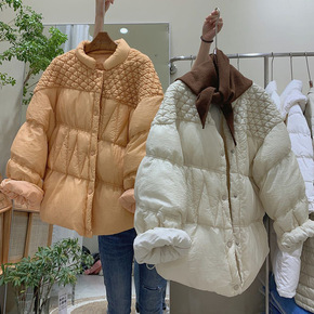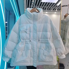 2022年秋冬新款品牌同款女装宽松立领白鸭绒韩版中...