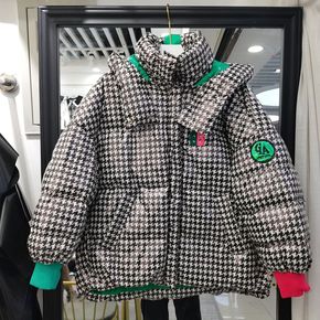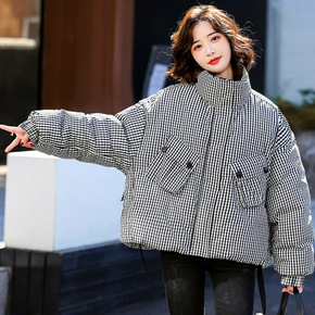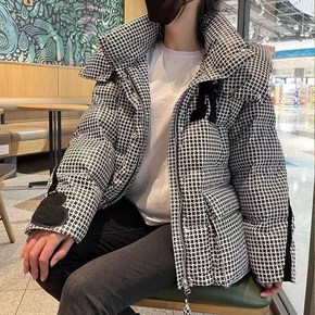 2022年千鸟格子羽绒服新款短款小个子冬外套立领时...