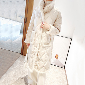 秋冬时尚小香风拼水貂毛皮中长款白鸭绒女立领宽松羽绒...