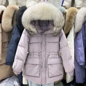 2022新款东大貉子大毛领白鸭绒羽绒服女短款收腰显...