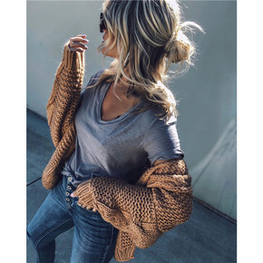 欧美跨境秋冬新款时尚女装亚马逊爆款纯色百搭针织V领...