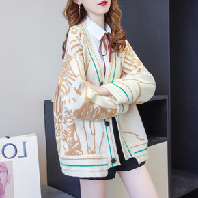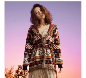 2019秋新款女装欧洲站流苏中长款开衫爆款星星条纹...