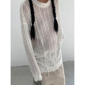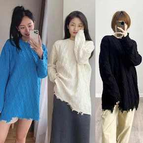 U「3色可选」破洞系绳套头毛衣女2022春夏新款女...