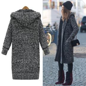 2022大码冬装新款毛衣外套开衫 外贸连帽加厚中长...