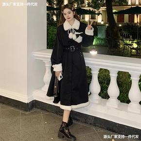 黑色长款棉服女装秋冬季2021新款设计感小个子高级...