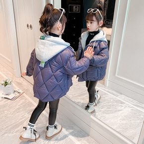 女童棉衣冬装2021年新款儿童假两件棉袄外套女孩冬...