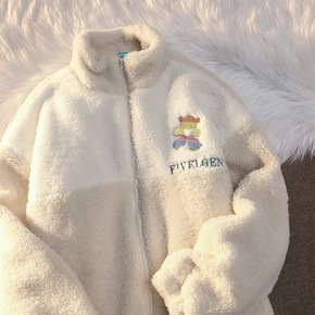 美式复古撞色立领羊羔绒卫衣女2021年秋冬韩版宽松...