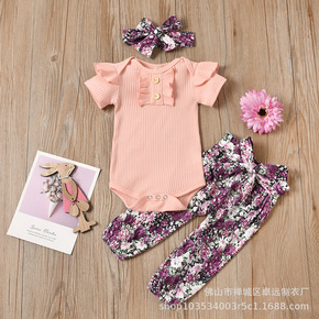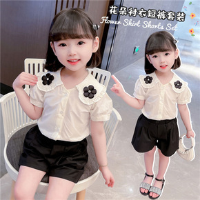女童套装夏装女宝宝韩版花朵娃娃领衬衫休闲短裤两件套...