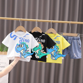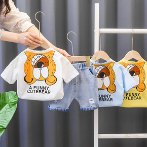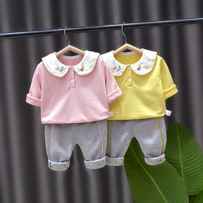 现货韩国爆款夏装男女宝宝纯棉套装洋气网红婴幼童短袖...