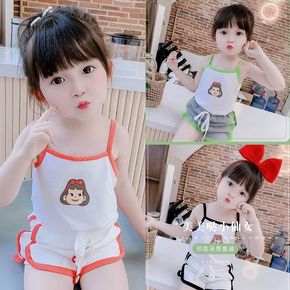 女童夏季洋气背心短裤套装儿童时髦吊带两件套宝宝舒适...