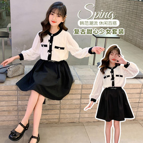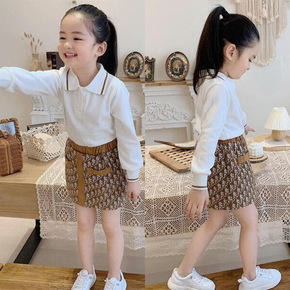 儿童装JK套装2022新款韩版洋气格子半身裙两件套...