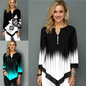 2021亚马逊欧美夏季渐变色拉链套头长袖印花宽松型...