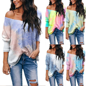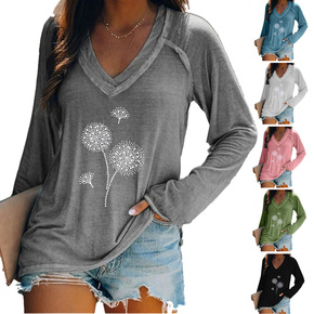 2022跨境秋冬亚马逊新款欧美女装扎染长袖V领宽松...