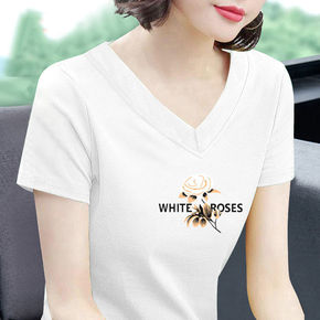 女式短袖T恤2022新款长绒棉V领匹马棉空调衣三色...