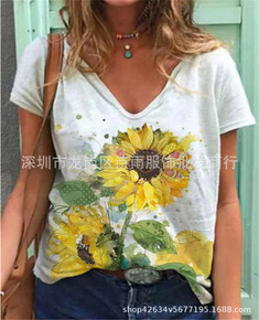 跨境亚马逊速卖通女装欧美热卖Y领印花短袖连衣裙...
