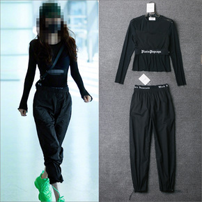 现货杨同款黑色网纱透明长袖T恤女上衣内搭打底冰袖防...
