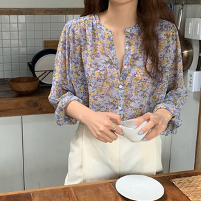 新款韩版气质一字领露肩雪纺衫女宽松泡泡上衣显瘦纯色...