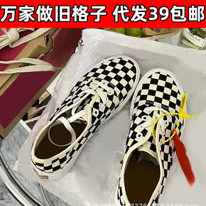 万S做旧格子帆布鞋棋盘格低帮硫化鞋情侣款ins...