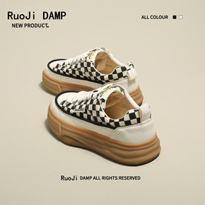 若纪黑白棋盘格鞋子女2022新款春季小众女鞋厚底增...