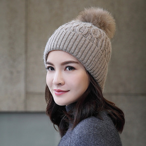 布塔帽子女冬天 潮狐狸大毛球针织帽 羊毛保暖百搭毛...